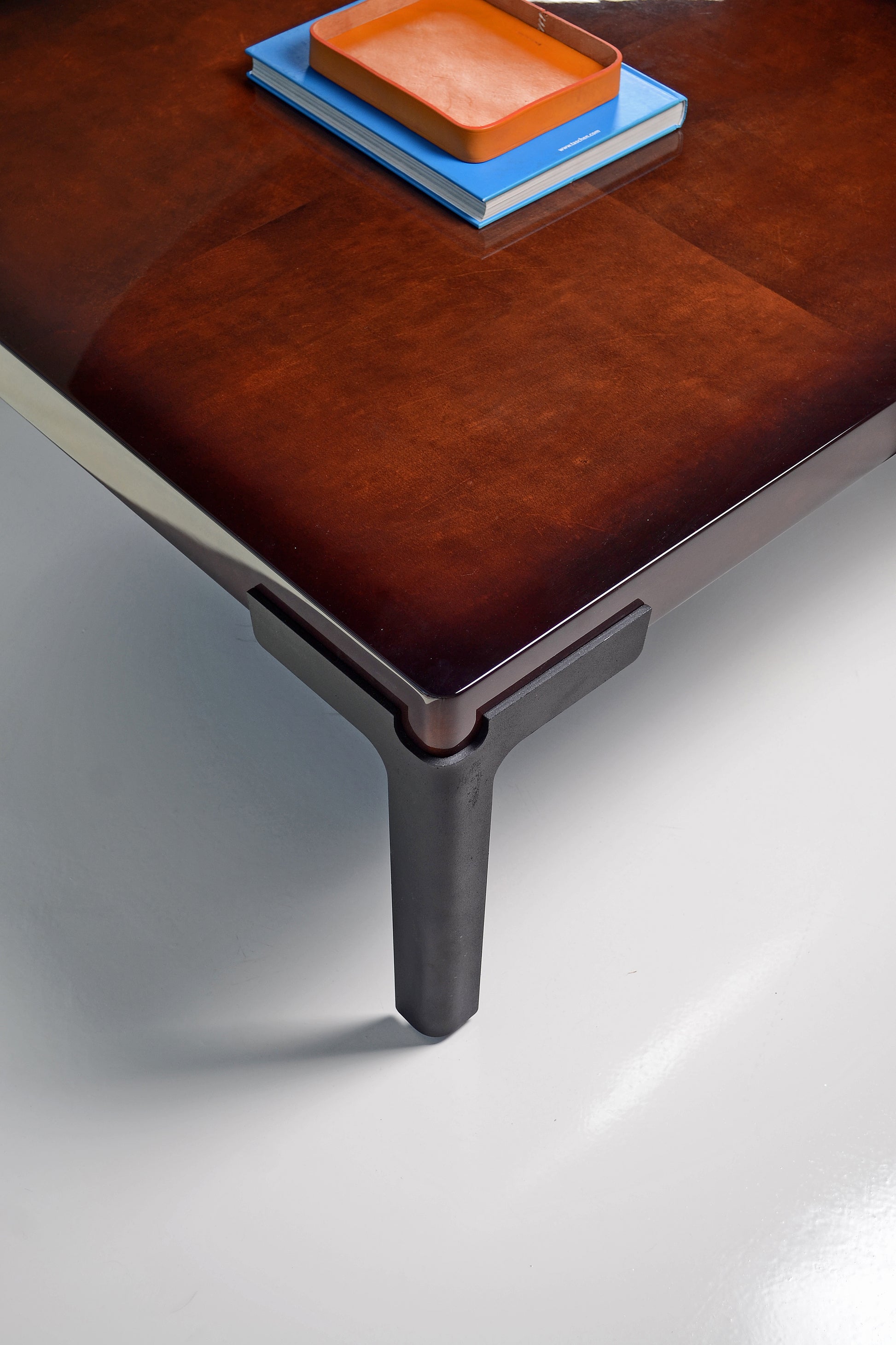 Charol Marrón laqueado brillante & patas de hierro empavonado
