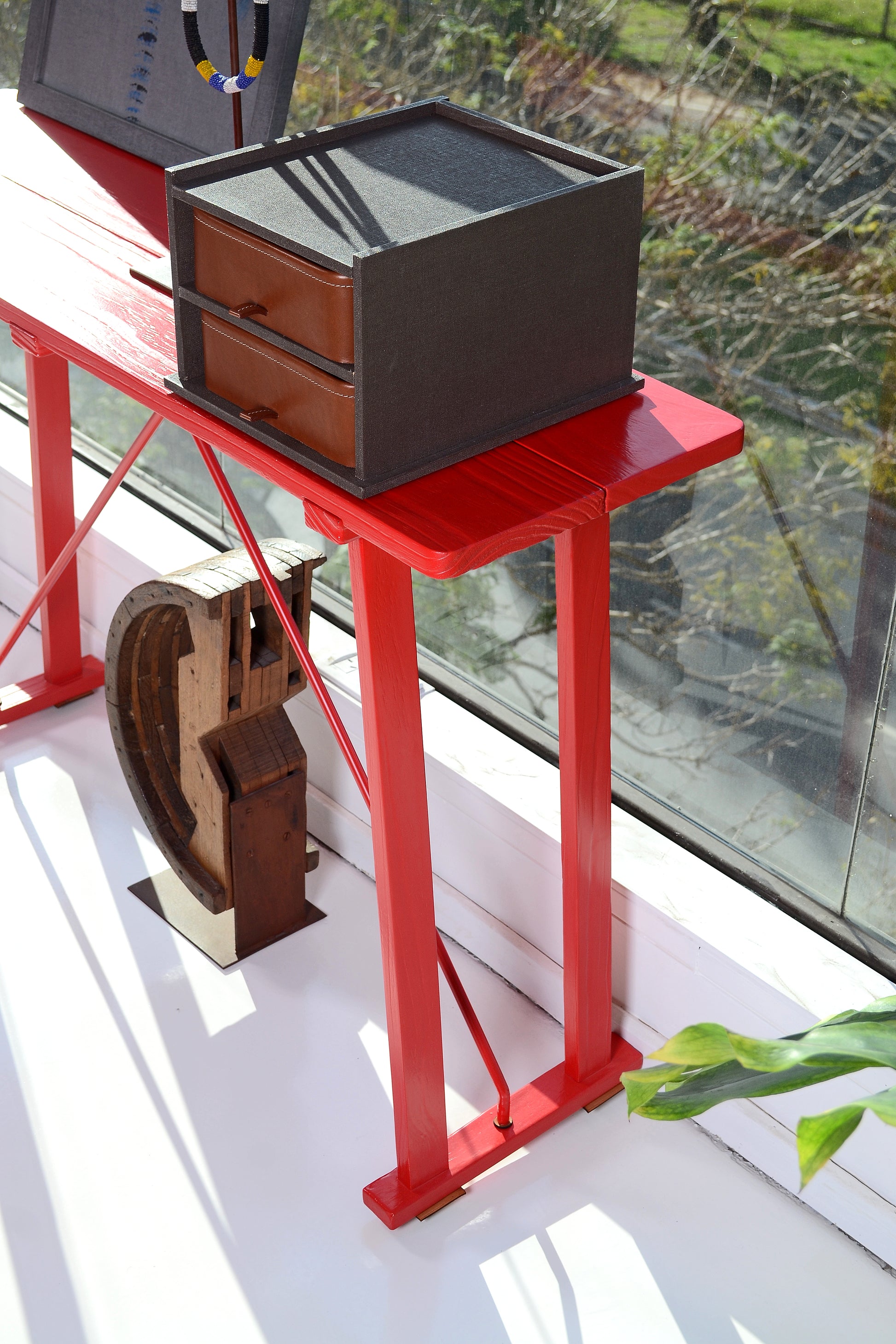 arriba del escritorio, en un placard, en un recibidor.