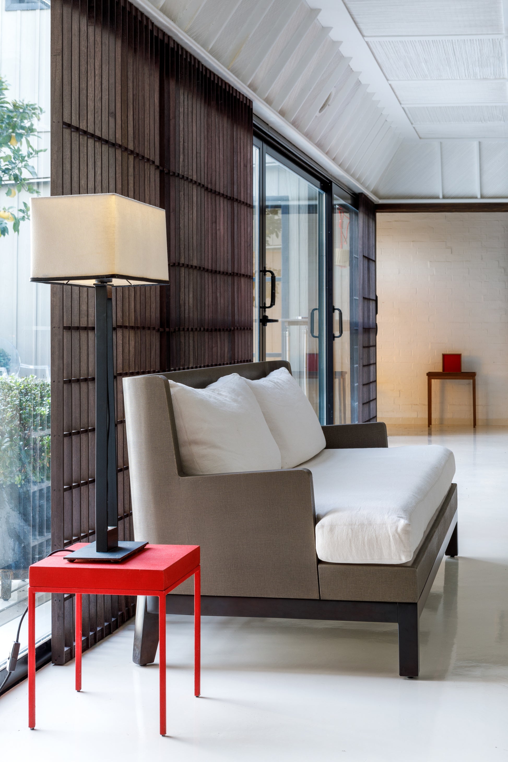 Totalmente confeccionada en lino tratado , tapa y patas.