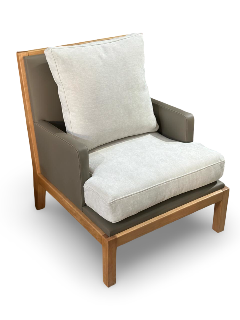 Madera de lenga maciza, cuero de tapiceria & almohadones en tela antimancha